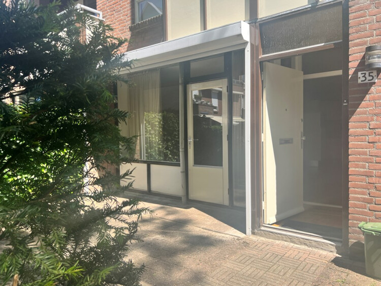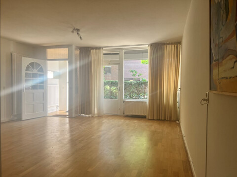 Op de begane grond treft men de woonkamer met houten vloer aansluitend op de nette open keuken, welke is v.v. apparatuur. Tevens is er een separaat toilet op de begane grond gelegen. Op de 1ste verdieping zijn de 2 slaapkamers (respectievelijk 12m2 en 8m2) en de badkamer met ligbad/douche combinatie, wastafel en 2de toilet gelegen. Er bevindt zich een separate berging op de verdieping, alwaar de wasmachine aansluiting gesitueerd is. Aan de voorzijde van het gehuurde ligt een privé terras en via 1 van de slaapkamers kan men een klein balkon bereiken.