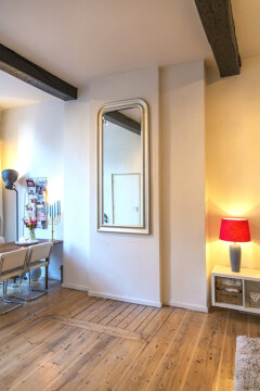 Mooi 1 slaapkamer appartement in een authentiek pand daterend van 1632 midden in hartje centrum Maastricht. Het appartement is op de 1ste verdieping gelegen en kenmerkt zich door de hoge plafonds, grote raampartij aan de voorzijde en de sfeervolle houten vloer in de woonkamer. De nette, separate keuken is v.v. een Miele koel/vries combinatie, Miele vaatwasser, 4 pits elektrisch fornuis en afzuigkap. Via de badkamer met douche en wastafel is de slaapkamer aan de achterzijde bereikbaar. Het toilet is separaat gelegen en vanuit de woonkamer te bereiken.