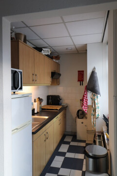 Bij binnenkomst komt men in een hal. Via de hal en het trappenhuis gaat u naar de 2e verdieping en komt men via de gang aan de rechterzijde in de Woonkamer met een ensuite en een halfopen keuken van 35m². De keuken is voorzien van een een 4-pits elektrisch fornuis, koelkast met vriesvak, combi magnetron en opbergmogelijkheden. Het gehele appartement is voorzien van een nieuwe vloerbedekking.