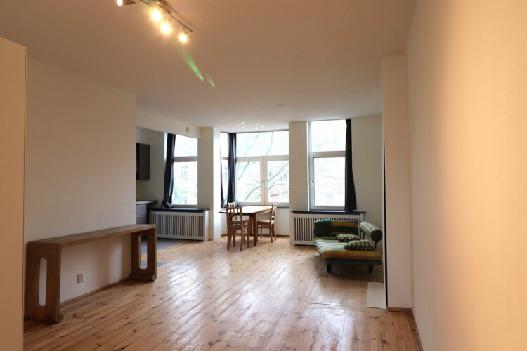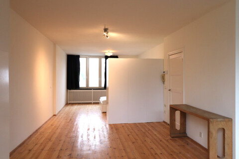 Het appartement heeft een woon-eetkamer die is opgesplitst om zo een aparte slaapkamer te realiseren. De woonkamer met mooie erker en de centraal gelegen houtkachel beslaat 28 m² en de slaapkamer is 16 m² groot.
