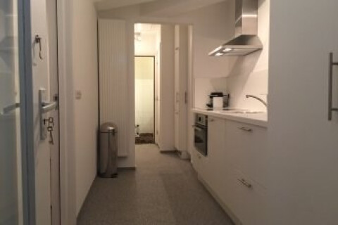 Zodra men het appartement betreed komt men in de Keuken terecht. De keuken is 10 m² groot en beschikt over een wasmachine, droger, vaatwasser, oven, ijskast, diepvries, 4 pitskookplaat, wastafel en een afzuiging. In de keukenkasten en lades staat een volledige keukeninventaris. (inclusief strijkijzer, strijkplank en stofzuiger)