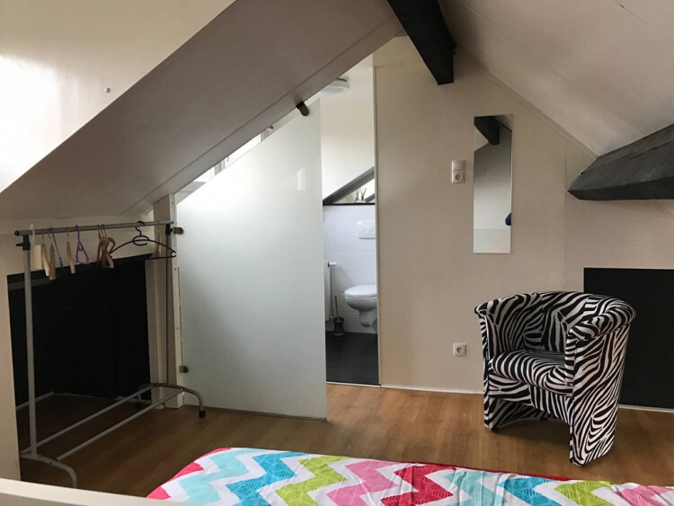 van 40 m2 heeft een eigen terras en prachtig uitzicht vanuit de dakramen en de vliering.