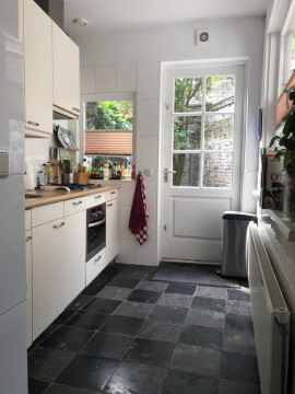 Het appartement is op de begane grond gelegen en beschikt over een prive patio aan de achterzijde (10m2). Kenmerkend zijn een aantal authentieke details gespaard gebleven. Verder beschikt het appartement over een nette keuken welke is v.v. een combi oven, 4 pits fornuis, afzuiging, vaatwasser en koelkast met vriesvakje. De compacte, moderne badkamer is v.v. een douche cabine, wastafel en toilet. Kortom een bijzonder appartement, wat zich onderscheidt door de authentieke details en bijzondere lay out.