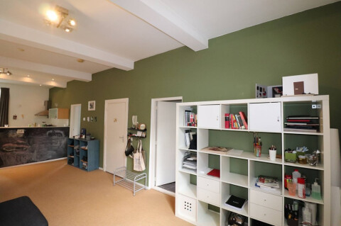 Als u het statige monumentaal pand (1856) betreedt dan komt u in ruime hal waar voldoende plaats is om fietsen te stallen. Via een vaste trap komt u bij het appartement op de 1e verdieping.