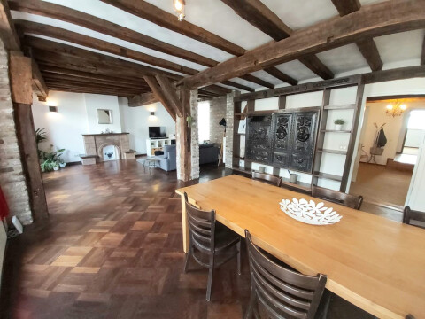 Ruime lichte woonkamer van ca 40m² met veel authentieke details.