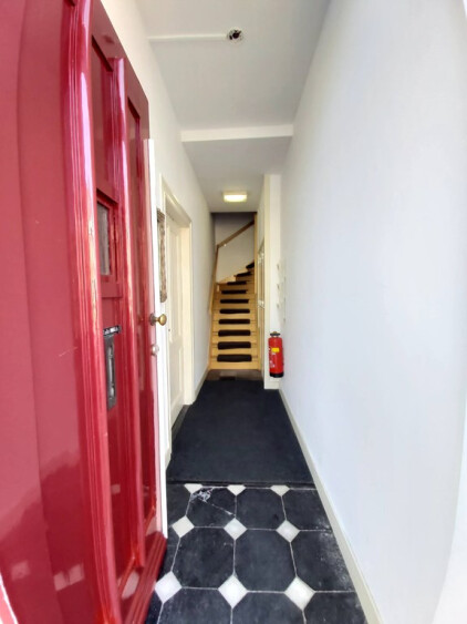 De slaapkamer (4.08m x 3.42m) is aan de achterzijde van het pand gelegen. De moderne badkamer is v.v. een ligbad / douche combinatie, wastafel, toilet en wasmachine aansluiting.